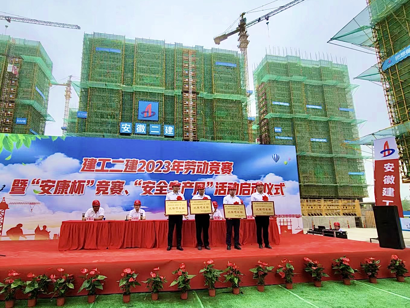 5月30日上午,建工二建在蕪湖中丞濱江時代項目現(xiàn)場舉行2023年勞動競賽暨“安康杯”競賽、“安全生產(chǎn)月”活動啟動儀式。公司領(lǐng)導(dǎo)班子成員,勞動競賽委員會成員,所屬各單位主要領(lǐng)導(dǎo),分管安全、生產(chǎn)及質(zhì)量副經(jīng)理,工會(副)主席,工管科、安全科科長,公司工會、工程管理部、安全管理部、技術(shù)質(zhì)量部相關(guān)人員,受表彰先進(jìn)集體和個人代表等共百余人參加本次活動,公司黨委副書記、工會主席王軍主持啟動儀式。