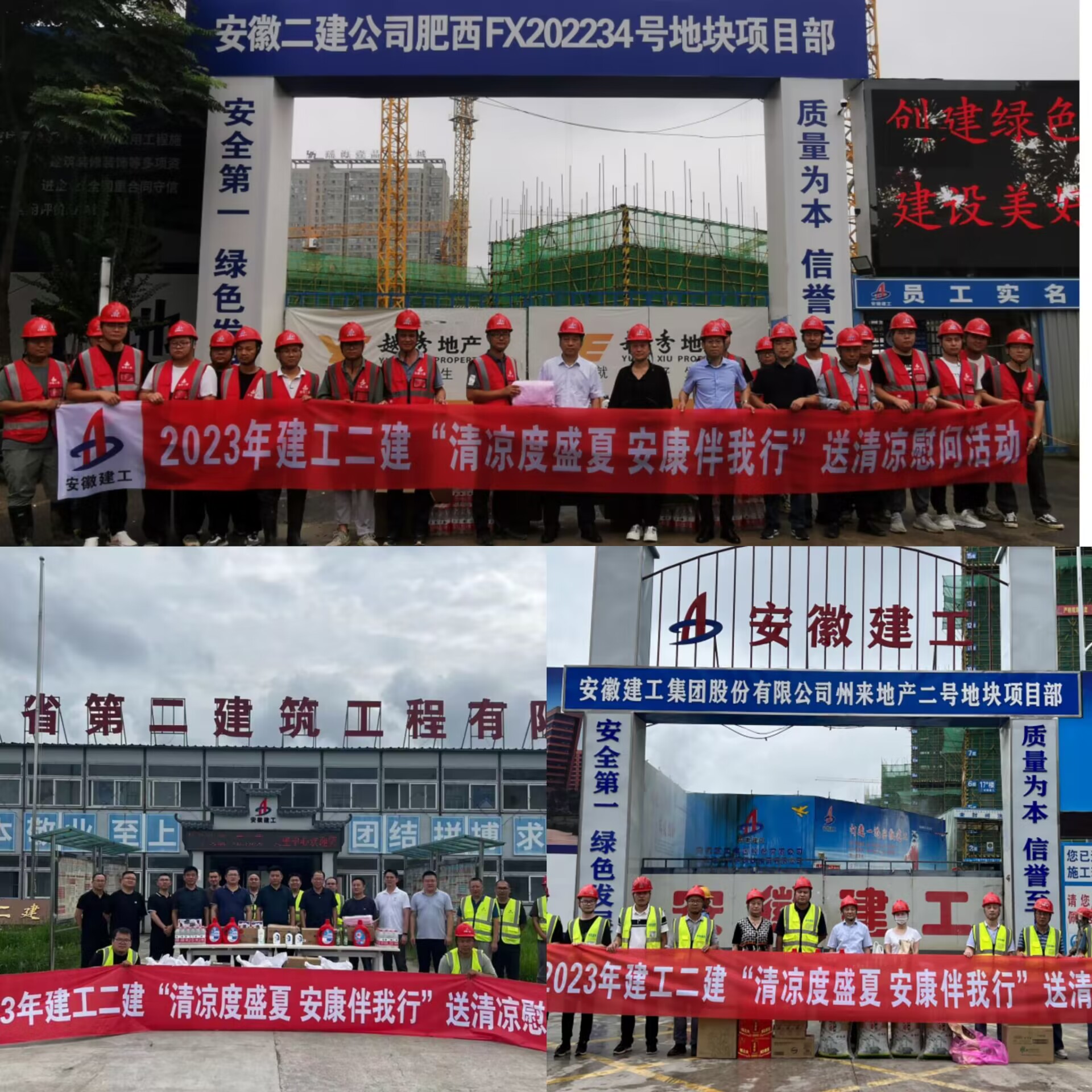 炎炎夏日,驕陽(yáng)似火,酷暑難耐。為保障職工身體健康,確保職工在各項(xiàng)生產(chǎn)工作中安全度夏,7月下旬,建工二建“清涼度盛夏 安康伴我行”送清涼慰問(wèn)活動(dòng)順利開(kāi)展。此次活動(dòng)由公司黨委統(tǒng)一部署安排,工會(huì)具體組織落實(shí),相關(guān)職能部門配合,公司領(lǐng)導(dǎo)帶隊(duì)赴一線項(xiàng)目,以點(diǎn)帶面共計(jì)對(duì)32個(gè)項(xiàng)目開(kāi)展“送清涼”慰問(wèn)。