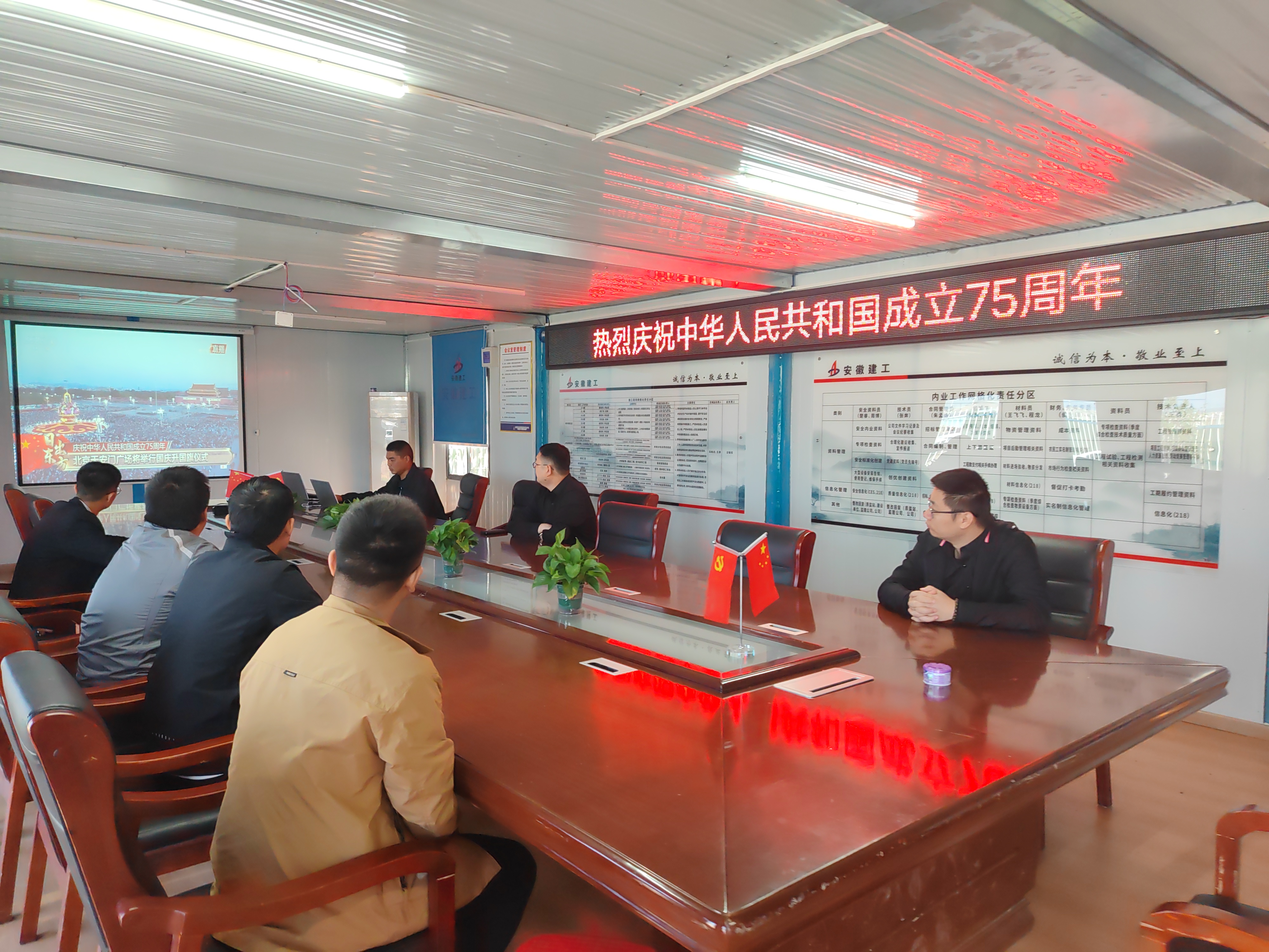 為慶祝中華人民共和國成立75周年,引導(dǎo)項目職工弘揚愛國主義精神,近日,宿徐園區(qū)城鎮(zhèn)一體化AB地塊工程項目部組織開展了“七十五載逢盛世,同心共筑譜華章”系列迎國慶活動,組織職工集中觀看天安門升國旗儀式,在慶祝橫幅上為祖國寫下祝福語,開展“我與國旗合個影”活動。