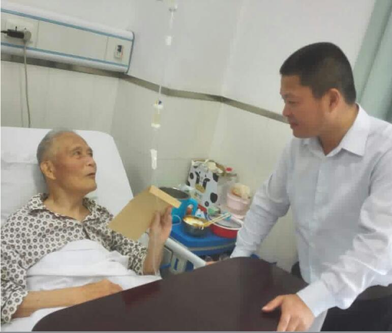 “七一”前夕,公司黨委書記劉賢奇同志專程前往市二院看望慰問因病住院的離休干部岳林同志。劉書記緊緊握著岳老的雙手向有著77年黨齡的岳老表達了公司黨委及公司領導班子的親切問候,細聲叮囑他要保重身體,并送上了慰問金。