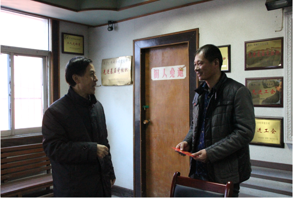 劉總一行首先看望了省級勞模劉慶初同志,老人家因患病做手術(shù)加上年事已高,老伴去世多年,生活出現(xiàn)困難。劉總關(guān)切地詢問勞模術(shù)后身體恢復(fù)情況,看到劉老精神狀態(tài)良好,交談愉悅,感到非常欣慰,并叮囑老人家要定期體檢,保重身體,一如既往地關(guān)心二建的成長和發(fā)展。在職工殷金龍家,劉總鼓勵他要有信心,不能放棄對孩子的治療,可以通過向國內(nèi)大醫(yī)院網(wǎng)上投遞病歷的方式,給孩子多渠道診治。在慰問機械公司困難黨員王友宏時,劉總對他面臨家庭生活壓力,仍能保持飽滿的工作狀態(tài),確保設(shè)備安拆的安全率和合格率給予了充分肯定,并聽取了機械公司經(jīng)理周俊匯報生產(chǎn)經(jīng)營形勢和面臨的困難。劉總從當(dāng)前市場行情出發(fā),對機械公司下一步的經(jīng)營方向提出了非常有價值的指導(dǎo)意見,并鼓勵機械公司抓住機遇,大力發(fā)展業(yè)務(wù),盡快成為二建公司新的經(jīng)濟增長點。劉家靜總經(jīng)理一行還專程前往病中休養(yǎng)的公司原副總經(jīng)理劉清俊家中看望,鼓勵他要以積極樂觀的心態(tài)治療調(diào)養(yǎng),爭取早日康復(fù)。集團領(lǐng)導(dǎo)此行給每戶家庭都送上了慰問金,并提前祝愿大家新春快樂!