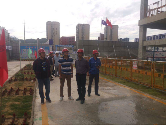 評審組首先聽取了創(chuàng)建工作的匯報,安慶市住建局領(lǐng)導(dǎo)在分公司副經(jīng)理崔俊的陪同下參觀了現(xiàn)場的安全文明標(biāo)準化設(shè)施,詳細了解了作為創(chuàng)建亮點的外腳手架噴淋體系和圍擋噴淋體系的效果和造價,對現(xiàn)場采用的效果好、可周轉(zhuǎn)的定型化防護予以了高度評價。