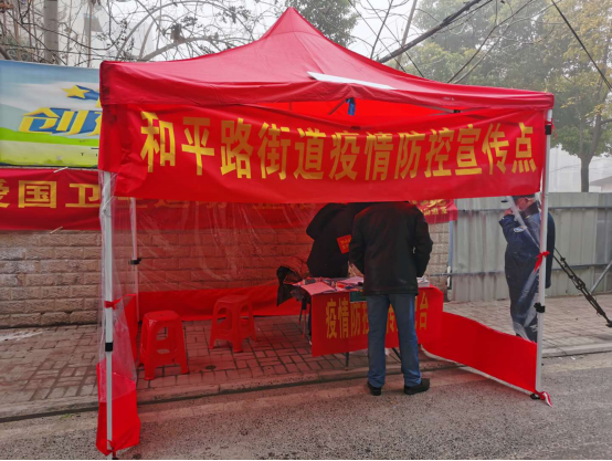 所有小區(qū)及道路出入口設(shè)置疫情防控宣傳登記臺(tái),懸掛宣傳條幅,張貼《新型冠狀病毒感染的肺炎疫情防控應(yīng)急指揮部通告》,放置有供居民自行取閱的疫情防控知識(shí)宣傳頁(yè)。每天有聲播放防控通告和防控知識(shí),提醒廣大民眾科學(xué)做好個(gè)人衛(wèi)生防護(hù),非常時(shí)期減少外出。對(duì)進(jìn)出居民做好信息登記并發(fā)放臨時(shí)出入證,進(jìn)行防控措施和防控知識(shí)再提醒,做到相關(guān)政府通告內(nèi)容家喻戶曉,實(shí)現(xiàn)抗疫宣傳全覆蓋。