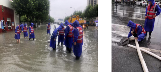 為積極響應(yīng)瑤海區(qū)政府和公司抗洪搶險(xiǎn)號召,7月18日二分公司第一時(shí)間成立兩支抗洪搶險(xiǎn)突擊隊(duì),準(zhǔn)備雨衣、雨鞋、鐵鍬、水泵、配電箱、電纜等物資20分鐘極速趕到抗洪前線,代表公司參加瑤海區(qū)住建局統(tǒng)一調(diào)度抗洪搶險(xiǎn)工作,救災(zāi)現(xiàn)場有的架設(shè)水泵、有的鋪設(shè)電纜、有的配合抽水排澇,分工明確、爭分奪秒,力爭將群眾的損失降到最低。