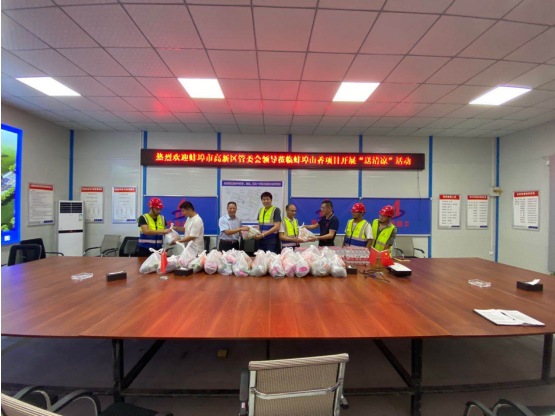 8月11日下午,蚌埠市高新區(qū)管委會韓永林,高新投資集團、高新建發(fā)公司總經(jīng)理陳輝蒞臨安徽二建蚌埠山香安置房EPC項目開展“送清涼”活動,為項目送來了藿香正氣水、綠豆、菊花茶、花露水等防暑降溫物品。韓永林詢問了生產(chǎn)進度、質(zhì)量安全施工以及高溫天氣項目部采取的防暑降溫措施等方面情況,同時要求,一定要確保高溫天氣下現(xiàn)場作業(yè)人員的安全,切實提高對一線作業(yè)職工的關心、關懷,避免 “非戰(zhàn)斗減員”情況發(fā)生,把安全放在首位,做到安全文明施工。