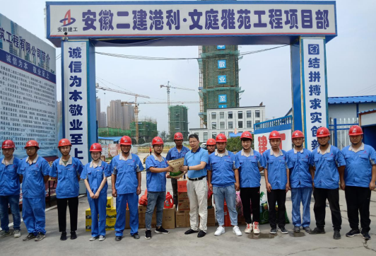 炎炎夏日,酷熱似火。8月12日,安徽二建公司總經(jīng)理陸勤斌,工會女工主任王俊一行蒞臨淮北國金華府(紫麟苑)、淮北恒基城安貞大廈、淮北港利文庭雅苑項目開展2020年“送清涼”活動。