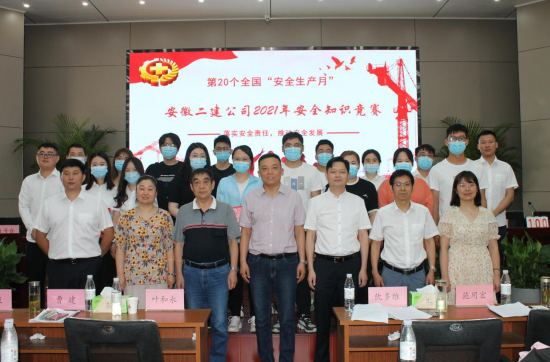 在全國(guó)第20個(gè)“安全生產(chǎn)月”到來(lái)之際。為了營(yíng)造濃厚的安全生產(chǎn)氛圍,人人講安全、人人重視安全。6月7日下午,在安徽二建公司新會(huì)議室舉行以“落實(shí)安全責(zé)任,推動(dòng)安全發(fā)展”為主題的安全知識(shí)競(jìng)賽。公司黨委副書(shū)記、紀(jì)委書(shū)記仇多維,副總經(jīng)理葉和永,安全總監(jiān)、安全管理部主任曹建,黨委工作部主任施用宏,工會(huì)副主席、女工主任王俊出席活動(dòng)并擔(dān)任評(píng)委。14支代表隊(duì)及領(lǐng)隊(duì)共120多人參加。