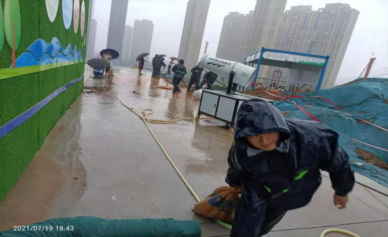 截至2021年7月20日17時許,大雨依舊沒有停歇,但項目人員沒有絲毫緊張,因為我們做好了充足的準備,防汛工作段段有人管、層層有人抓、工作有檢查、任務(wù)有安排,全力作答防汛“考卷”,保障公司財產(chǎn)和項目參戰(zhàn)人員的安全。