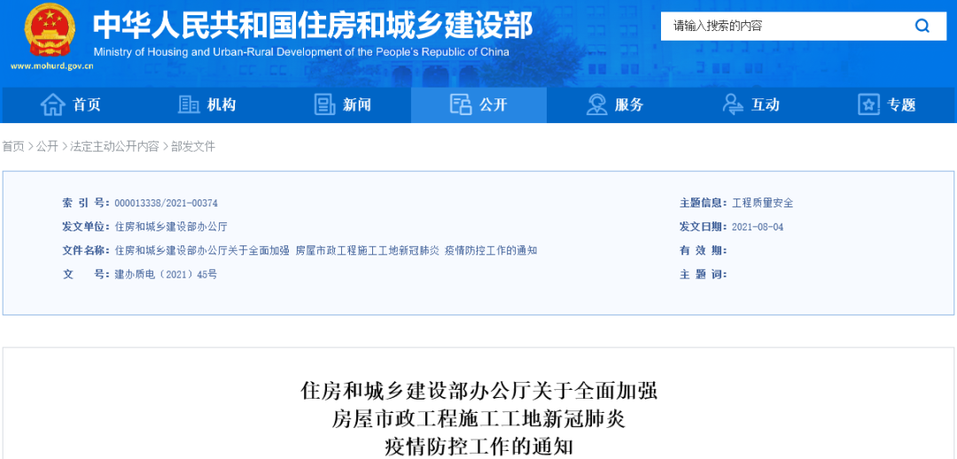 為堅(jiān)決貫徹落實(shí)黨中央、國務(wù)院關(guān)于新冠肺炎疫情防控的部署要求,持續(xù)深入做好房屋市政工程施工工地(以下簡稱“施工工地”)疫情防控工作,切實(shí)保障建筑施工領(lǐng)域從業(yè)人員身體健康和生命安全,住房和城鄉(xiāng)建設(shè)部辦公廳日前印發(fā)通知,要求全面加強(qiáng)施工工地疫情防控工作。