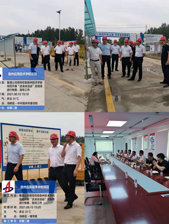 8月10日,建工控股黨委委員、紀(jì)委書記王汪苗一行赴宿州三館一院一中心及應(yīng)用技術(shù)學(xué)校項(xiàng)目開(kāi)展送清涼活動(dòng),發(fā)放防暑降溫物品,看望、慰問(wèn)奮戰(zhàn)在勞動(dòng)競(jìng)賽一線的項(xiàng)目職工。