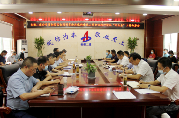 9月3日下午,安徽二建公司召開貫徹落實(shí)全國國有企業(yè)黨的建設(shè)工作會(huì)議精神情況“回頭看”工作部署會(huì),學(xué)習(xí)傳達(dá)了建工控股黨委貫徹落實(shí)全國國有企業(yè)黨的建設(shè)工作會(huì)議精神情況“回頭看”工作部署會(huì)暨三季度黨群工作會(huì)議精神,并對公司開展“回頭看”工作進(jìn)行部署安排。公司黨委副書記、總經(jīng)理李建成作動(dòng)員講話,公司黨委副書記、工會(huì)主席王軍主持會(huì)議。公司領(lǐng)導(dǎo)班子成員、機(jī)關(guān)部門主要負(fù)責(zé)人、所屬各單位黨政主要領(lǐng)導(dǎo)參會(huì)。