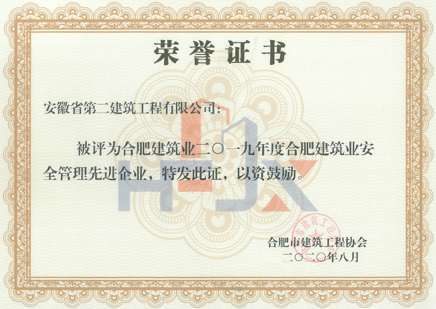 2019年度合肥建筑業(yè)安全管理先進(jìn)企業(yè)