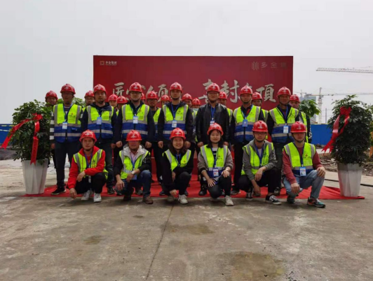 2021年4月27日10點(diǎn)28分,在隆隆炮聲中,伴隨著最后一方混凝土澆筑到位,一分公司承建的泗縣多金城項(xiàng)目首開之一的G8#樓舉行了隆重的封頂儀式。建設(shè)、監(jiān)理、設(shè)計(jì)、勘察等參建單位及項(xiàng)目部全體員工參加了封頂儀式。