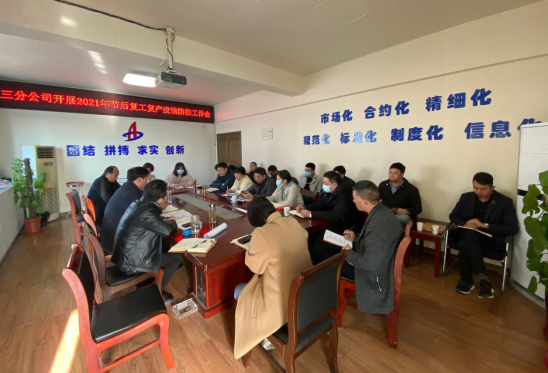 三分公司在召開“2021年節(jié)后復工復產(chǎn)暨疫情防控工作會議”后,積極落實會議精神,分公司領導帶頭組織機關各科室負責人成立復工檢查小組,于2月22日至3月5日前往各項目部,就疫情防控、進度、安全、技術(shù)質(zhì)量、物資合同、核算管理、綜合管理等內(nèi)容開展復工檢查。
