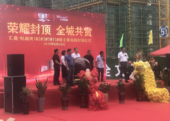 2019年6月28日,臨泉匯鑫·悅瀾灣一期B標(biāo)段工程7#、11#主體結(jié)構(gòu)封頂。匯鑫集團(tuán)常務(wù)副總經(jīng)理云飛、副總經(jīng)理王坤 、 臨泉匯鑫置業(yè)總經(jīng)理趙光祥、安徽奧特萊斯企業(yè)管理有限公司總經(jīng)理俞修平、安徽阜陽中盛建設(shè)有限公司董事長張軍、安徽省第二人民醫(yī)院副院長段報(bào)喜、安徽二建公司第二分公司經(jīng)理孟慶武等領(lǐng)導(dǎo)出席儀式。