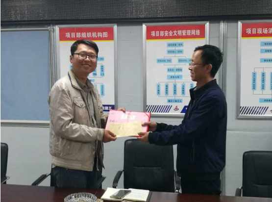 阜陽吾悅廣場項(xiàng)目部四月“閃亮之星”的獎狀在大家的鼓掌聲中送到了李彬手中。