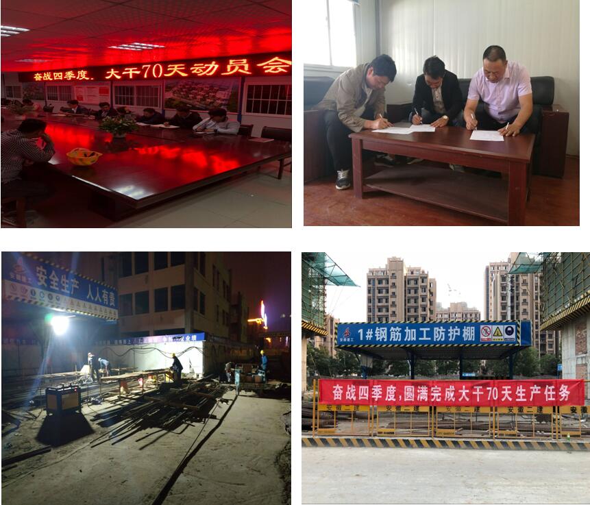 參賽項(xiàng)目已全面進(jìn)入競(jìng)賽狀態(tài),宣傳橫幅隨處可見(jiàn),大干氛圍濃厚。分公司要求各項(xiàng)目部在保證質(zhì)量、安全的前提下,加班加點(diǎn),克服困難,為實(shí)現(xiàn)“大干七十天”達(dá)到預(yù)定目標(biāo)而不斷努力!