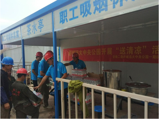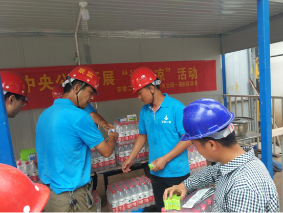 連日來氣溫居高不下,舒城遠大中央公園項目部于6月27日下午在施工現場開展了為工友“送清涼”活動,表達了項目部對奮戰(zhàn)在高溫酷暑下員工的關懷與慰問。