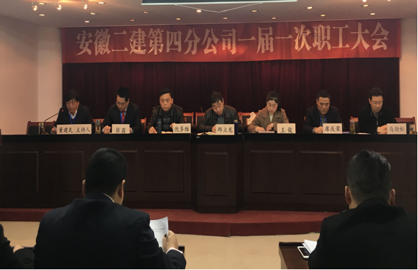 乘風破浪推發(fā)展,勠力同行齊奮進。為加快轉型升級步伐,優(yōu)化內部管理機制,客觀分析當前四分公司面臨的形勢,認真學習貫徹落實安徽二建公司十五屆四次職代會精神,凝心聚力抓好2017年度各項工作,3月20日上午,安徽二建四分公司一屆一次職工大會在三樓會議室隆重召開。公司總工程師邱立龍、紀委書記仇多維、女工主任王俊以及四分公司職工近40人參加了會議。
