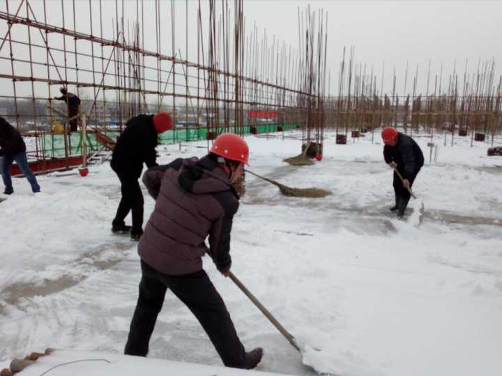 皚皚白雪覆蓋著皖北大地,凜冽的北風(fēng)吹在面頰上非常刺痛,全體員工發(fā)揚(yáng)安徽二建人“特別能戰(zhàn)斗、特別能吃苦”的精神,與風(fēng)雪嚴(yán)寒對抗,他們迅速將影響施工的積雪清掃完畢,并科學(xué)調(diào)度、合理鋪排,施工緊張有序,項(xiàng)目建設(shè)進(jìn)度不斷推進(jìn)。