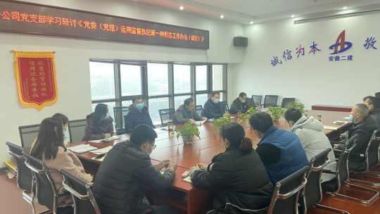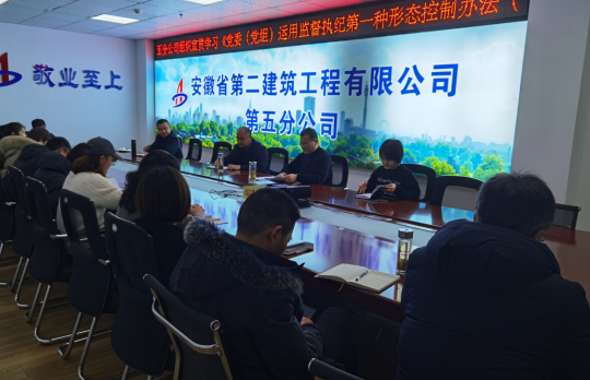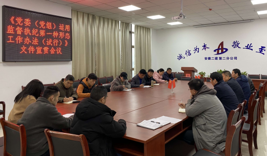 近期,為認(rèn)真落實全面從嚴(yán)治黨主體責(zé)任和監(jiān)督責(zé)任,踐行“四種形態(tài)”,強(qiáng)化“第一種形態(tài)”運用。安徽二建公司所屬各單位組織學(xué)習(xí)了《黨委(黨組)運用監(jiān)督執(zhí)紀(jì)第一種形態(tài)工作辦法(試行)》。