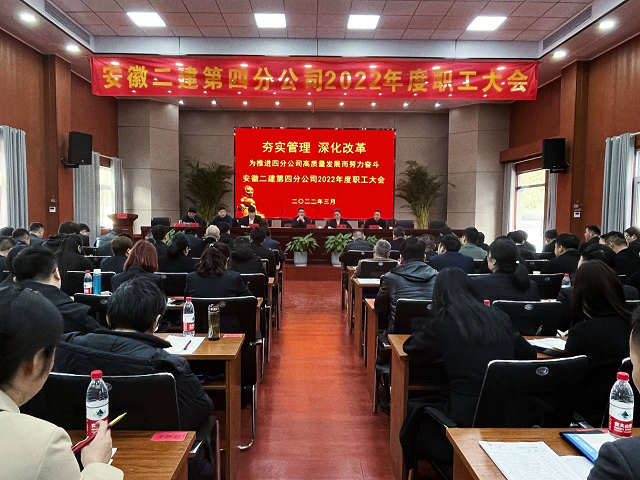 大會(huì)的主要議程是聽取并審議第四分公司《經(jīng)理工作報(bào)告》《領(lǐng)導(dǎo)班子述職述廉報(bào)告》等報(bào)告,測(cè)評(píng)領(lǐng)導(dǎo)班子及成員和推薦年輕干部等。分公司副經(jīng)理潘澤強(qiáng)作題為《夯實(shí)管理 深化改革 為全面推進(jìn)四分公司持續(xù)健康穩(wěn)定發(fā)展而努力奮斗》的工作報(bào)告,報(bào)告系統(tǒng)總結(jié)了分公司2021年的各項(xiàng)工作,全面部署了2022年分公司的工作任務(wù)。